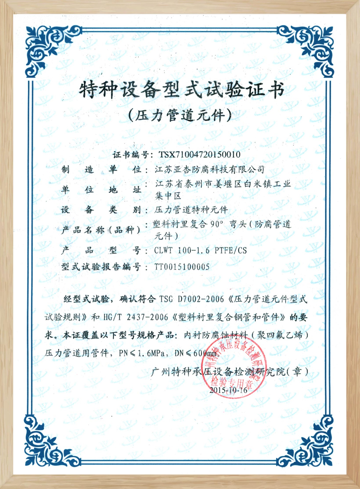 特種設(shè)備型式試驗(yàn)證書